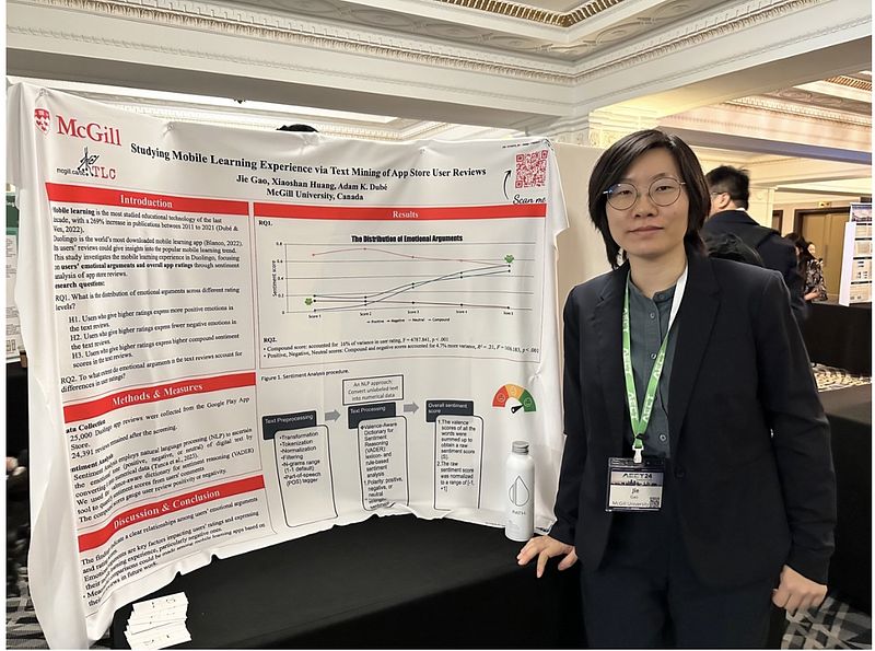 During October 19-23, Jie Gao attended the AECT 2024 International Convention as a presenter in Kansas City, USA. Her research was “Studying Mobile Learning Experience via Text Mining of App Store User Reviews.” This study used the Natural Language Processing method to analyze learners’ review text to understand their mobile learning experience. The proceeding may be released next Spring.