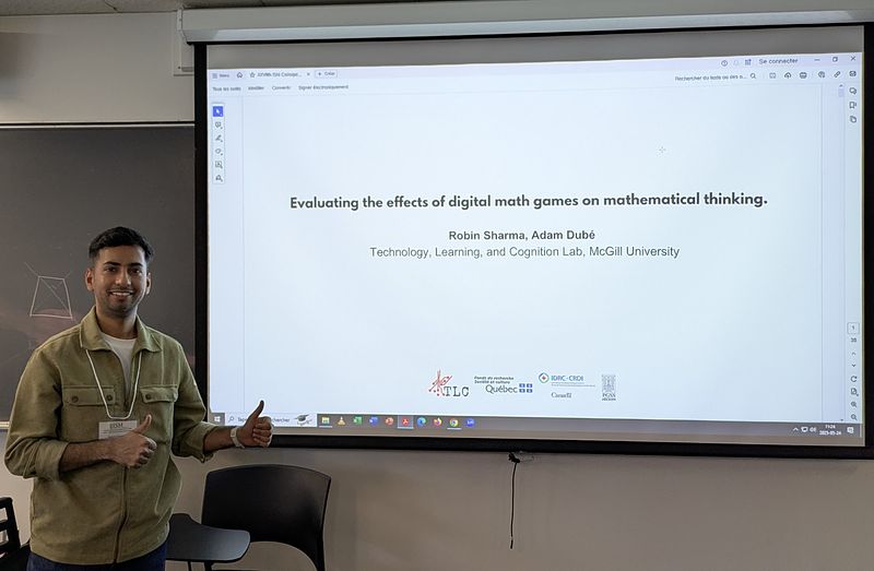 TLC lab member Robin Sharma presented his work on the design and development of a digital game to build mathematical understanding of middle school children at the XXVIIth ISM Graduate Student Colloquium. Organized by the Institut des Sciences Mathématiques, This colloquium brought together the community of graduate students in mathematics from all of Quebec’s universities.